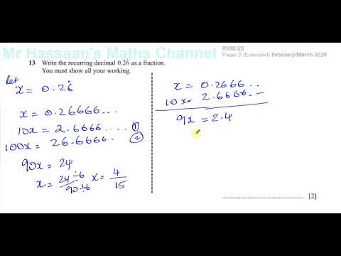 0580 22 F M 20 Igcse Paper 22 Q13 Recurring Decimals To Fractions Youtube